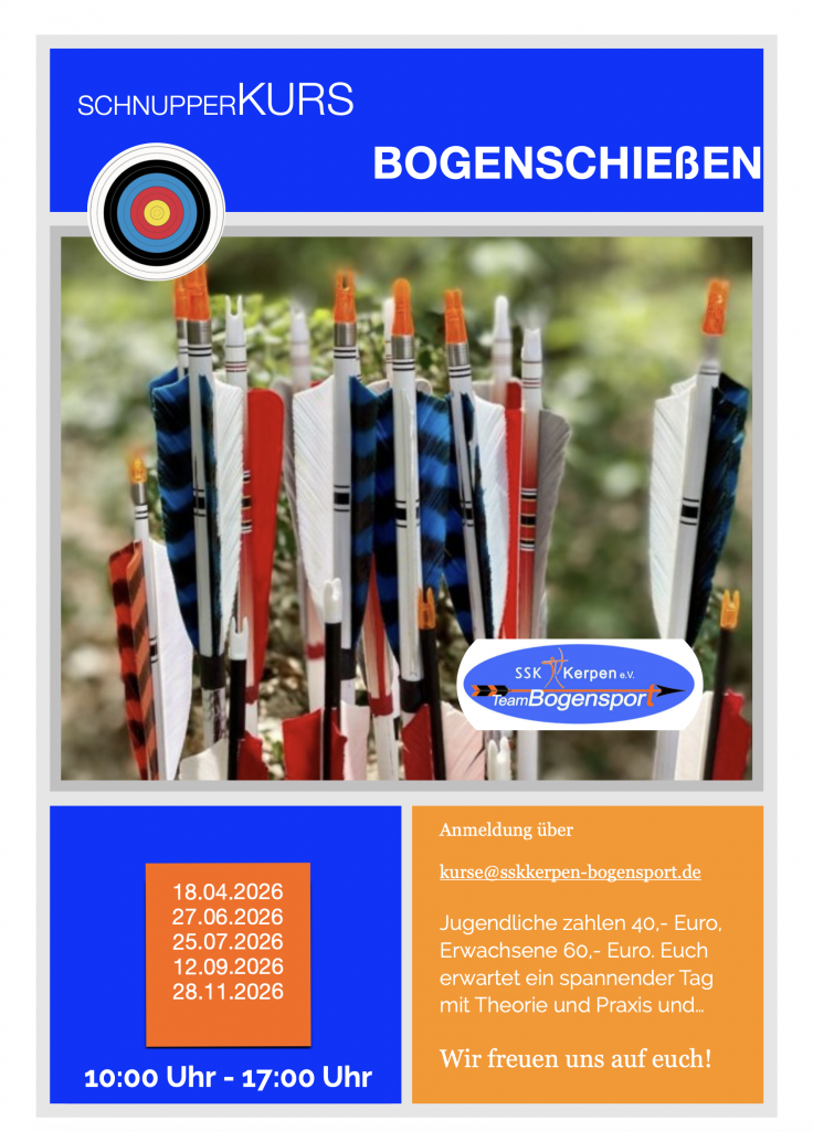 Bis bald auf dem Schießplatz! Dein Team vom SSK Kerpen – Bogensport